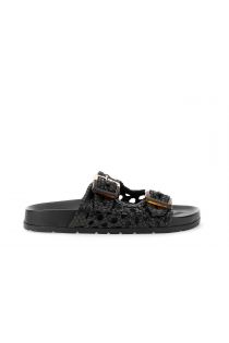 sandales-chaussons en cuir tressé avec boucles et semelle intérieure profilée black