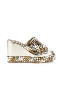 sandales-chaussons en maille synthétique et semelle compensée à effet laminé. multi bronze