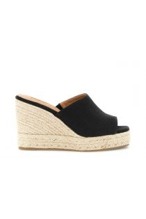 Sandales plates en toile à large bride et bout ouvert. semelle compensée en corde tressée façon espadrille et plateforme stable. talon compensé en corde de 10.5 cm et plateforme de 3.5 cm. semelle intérieure en cuir. idéales pour un look estival à la fois confortable et élégant.