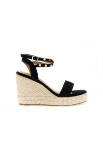 Sandales décontractées idéales pour l'été. confectionnées en toile elles allient légèreté et confort pour un usage quotidien. leur fermeture à boucle assure un maintien sûr et ajustable. talon compensé en corde de 10.5 cm et plateforme de 3.5 cm. semelle intérieure en cuir.