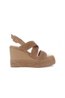 sandales compensées à talon croisé en similicuir tressé effet cuir. tan