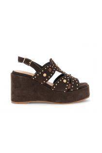 Sandales en daim à talon compensé de 9 cm ornées de clous et de cabochons pour un style audacieux. dotées d'une semelle intérieure en cuir elles allient confort et élégance parfaites pour des tenues d'été décontractées et raffinées.