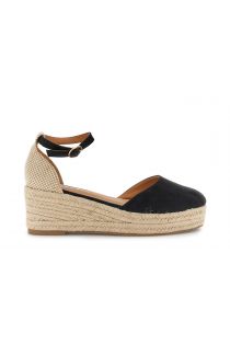 Sandales compensées en microfibre de 6.3 cm fermées à l'avant et dotées d'une bride cheville. plateforme de 2.9 cm. semelle en corde tressée détail texturé à l'arrière et silhouette féminine et confortable : parfaites pour des tenues d'été à la fois décontractées et élégantes.