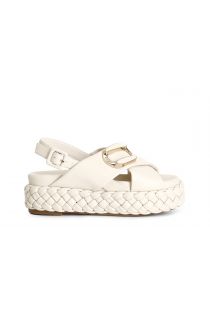 Sandales croisées avec pince dorée. confortable fussbett et fond recouvert de galon. la cale mesure 6 cm de haut. chaussure au chaussant confortable confortable même après plusieurs heures d'utilisation.