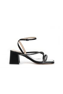 Sandales croisées recouvertes de micro-strass avec bride à la cheville. talon h. 65 mm.
