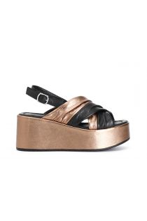 sandales croisées bicolores en cuir black/bronze