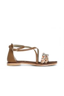 sandales croisées en cuir tan