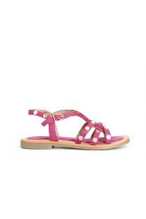 Sandales en daim et raphia tressé. les cabochons décoratifs complètent l'ensemble donnant à la sandale une sensation bohème chic.