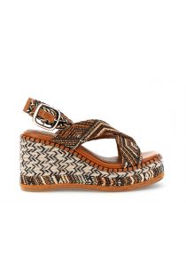 sandales croisées en tissu sur une semelle compensée. tan combo