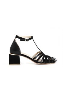 Sandales effet cage en cuir en « t ». contrefort avec bride de cheville réglable.