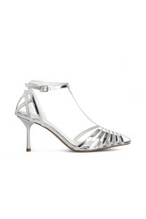 Sandales effet cage en « t » effet métallisé. semelle intérieure en cuir. talon haut de 70 mm.