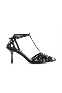 Sandales effet cage en « t ». bride de cheville à boucle. semelle intérieure en cuir. talon haut de 70 mm.