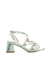 Sandales effet lamé avec lacets croisés. la semelle intérieure en cuir véritable rembourrée rend la chaussure confortable même après plusieurs heures d'utilisation. le talon mesure 50 mm.