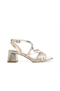 Sandales effet lamé avec lacets croisés. la semelle intérieure en cuir véritable rembourrée rend la chaussure confortable même après plusieurs heures d'utilisation. le talon mesure 50 mm.