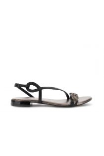 Sandales plates en cuir avec bride en t et bride cheville. semelle intérieure en cuir. lignes épurées détail bijou sur le devant et petit talon miroir de 1.6 cm. confortables et audacieuses elles sont parfaites pour rehausser vos tenues estivales de jour comme de nuit.