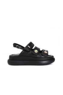 sandales en cuir avec boutons et velcro black