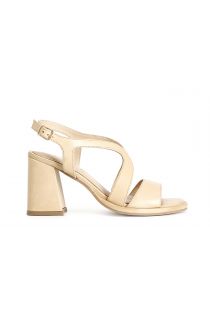 Sandales en cuir avec plateforme de 15 mm. bande et croisement sur le cou-de-pied. semelle intérieure matelassée en cuir véritable. talon large de 70 mm de haut.