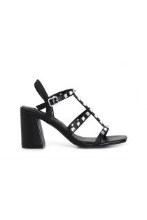 Sandales en cuir avec cabochons argentés. bride réglable. semelle intérieure en cuir. talon haut de 75 mm.