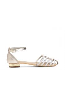 Sandales effet cage en cuir avec contrefort derrière et mini strass. bride à la cheville.