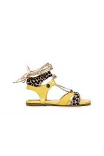 Sandales en cuir avec des lanières à nouer autour de la jambe avec détails poulain