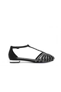 Sandales en cuir cage en « t » avec contrefort derrière et mini strass. bride à la cheville.