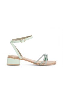 Sandales en cuir avec mini strass talon h. 35 mm.