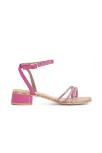Sandales en cuir avec mini strass talon h. 35 mm.