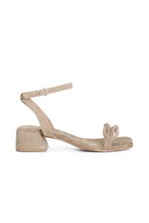 Sandales en cuir avec noeud sur le dessus. la doublure et la semelle intérieure sont en cuir. bride à la cheville. le talon mesure 4.5 cm.