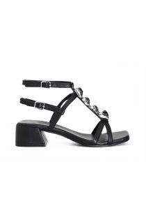 Sandales en cuir avec pierres et motif "t". double sangle. la doublure et la semelle intérieure sont en cuir. forme carrée. le talon mesure 4.5 cm.