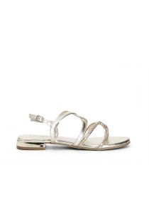 sandales en cuir avec tige croisée et strass thermocollés gold