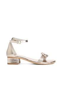 Sandales en cuir métallisé avec nœud. contrefort derrière. bride à la cheville.