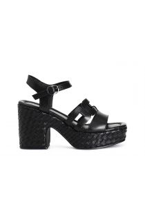 sandales en cuir gilda avec deux bandes avant et talon compensé tressé black