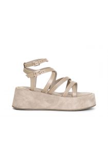 Sandales en cuir multi-brides croisées. la doublure et la semelle intérieure sont en cuir. coin à bandes de 5.7 cm de haut.