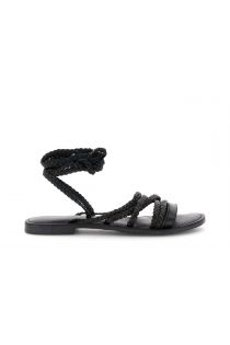 sandales en cuir ornées de broderies tressées et à fermeture esclave black
