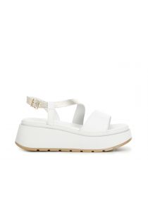 sandales en cuir sur semelle compensée lanière asymétrique white
