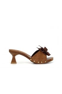 sandales en daim avec bande décorée et fleur en 3d. tobacco