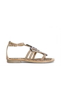 sandales en daim et imprimé tacheté avec accessoire en strass multi bronze