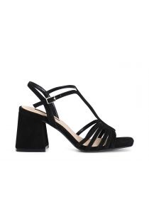 Sandales "t" en suède à multi-brides. la semelle intérieure est en cuir. talon confortable de 5.6 cm.