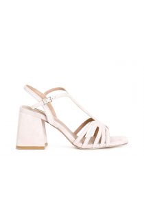 Sandales "t" en suède à multi-brides. la semelle intérieure est en cuir. talon confortable de 5.6 cm.