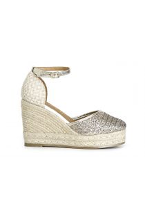Sandales en raphia avec bride à la cheville et semelle compensée en corde