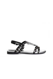 sandales en simili cuir craquelé avec clous et bride d'entrejambe black