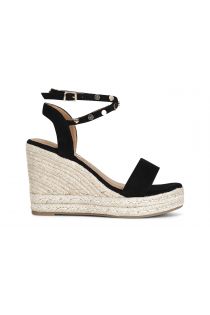 sandales en tissu avec cabochons sur semelle compensée en corde black