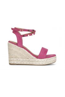 sandales en tissu avec cabochons sur semelle compensée en corde hot pink