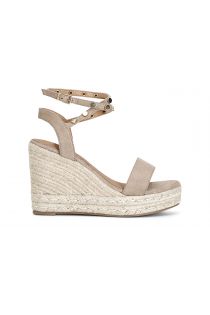 Sandales en tissu avec cabochons sur semelle compensée en corde.