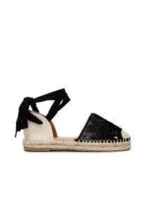 Sandales en tissu avec paillettes avec lanière à la cheville sur semelle basse en corde