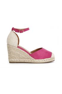 Sandales en tissu sur semelle compensée en corde. bride de cheville en tissu. chaussure fermée à l'avant et à l'arrière.