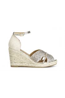 sandales en tissu fermées derrière et semelle compensée en corde light gold
