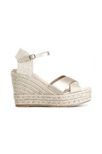 Sandales en tissu avec deux bandes croisées. plateforme de 30 mm de haut et semelle compensée en corde de 90 mm.