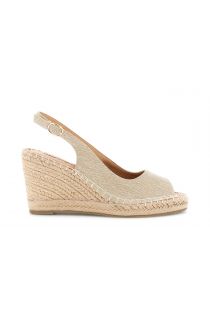 Sandales ouvertes en toile. semelle intérieure en cuir. talon compensé en corde de 9 cm et plateforme de 2 cm. bride ajustable.