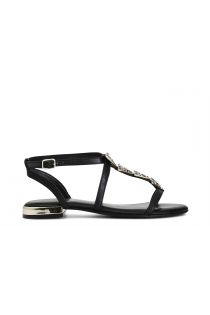 Sandales femme en cuir. accessoires triangles en strass. bride de cheville à boucle.